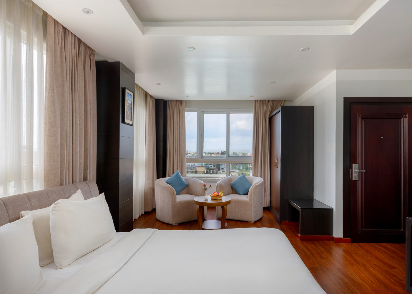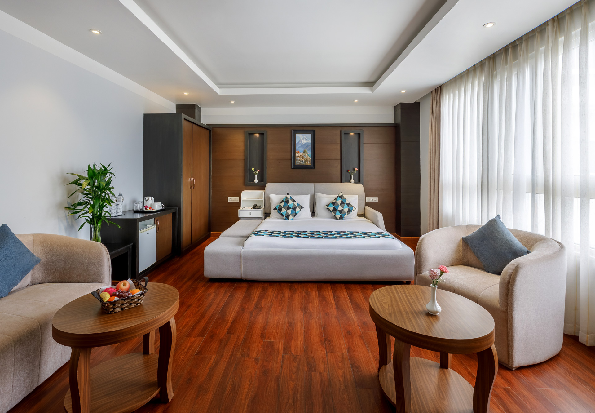 Our 6 Junior Suites deliver sophistication with expansive layouts, king-sized beds, and panoramic city views. Each suite includes elegant furnishings, premium amenities, a dedicated work area, seating lounge, and a spacious bathroom with shower and bathtub. Perfect for executives or couples seeking comfort, privacy, and a distinguished hotel experience.